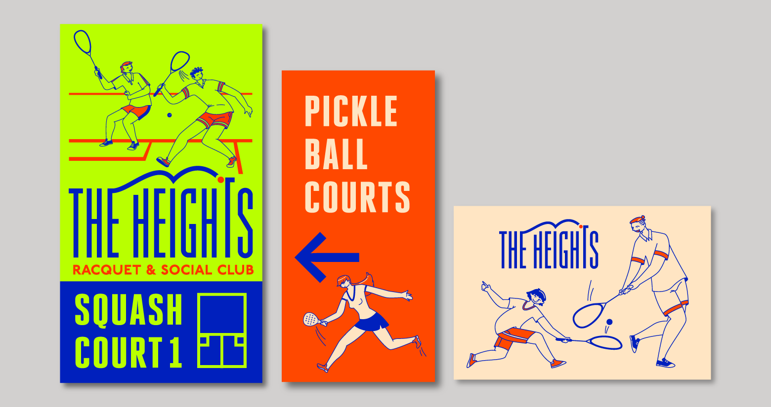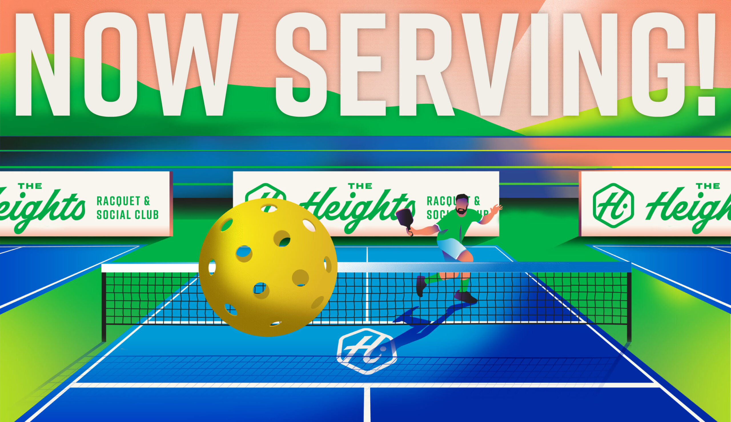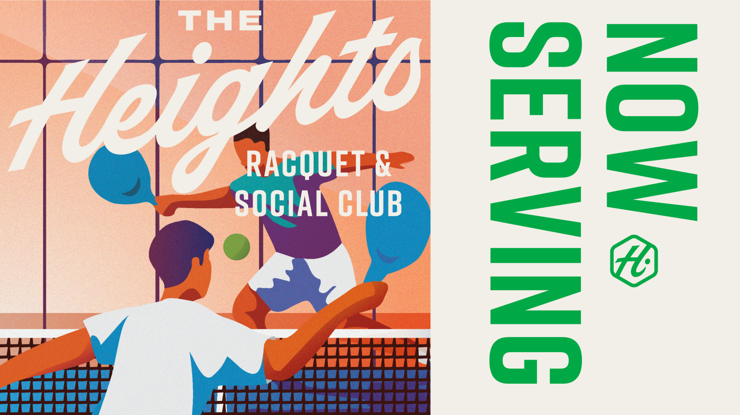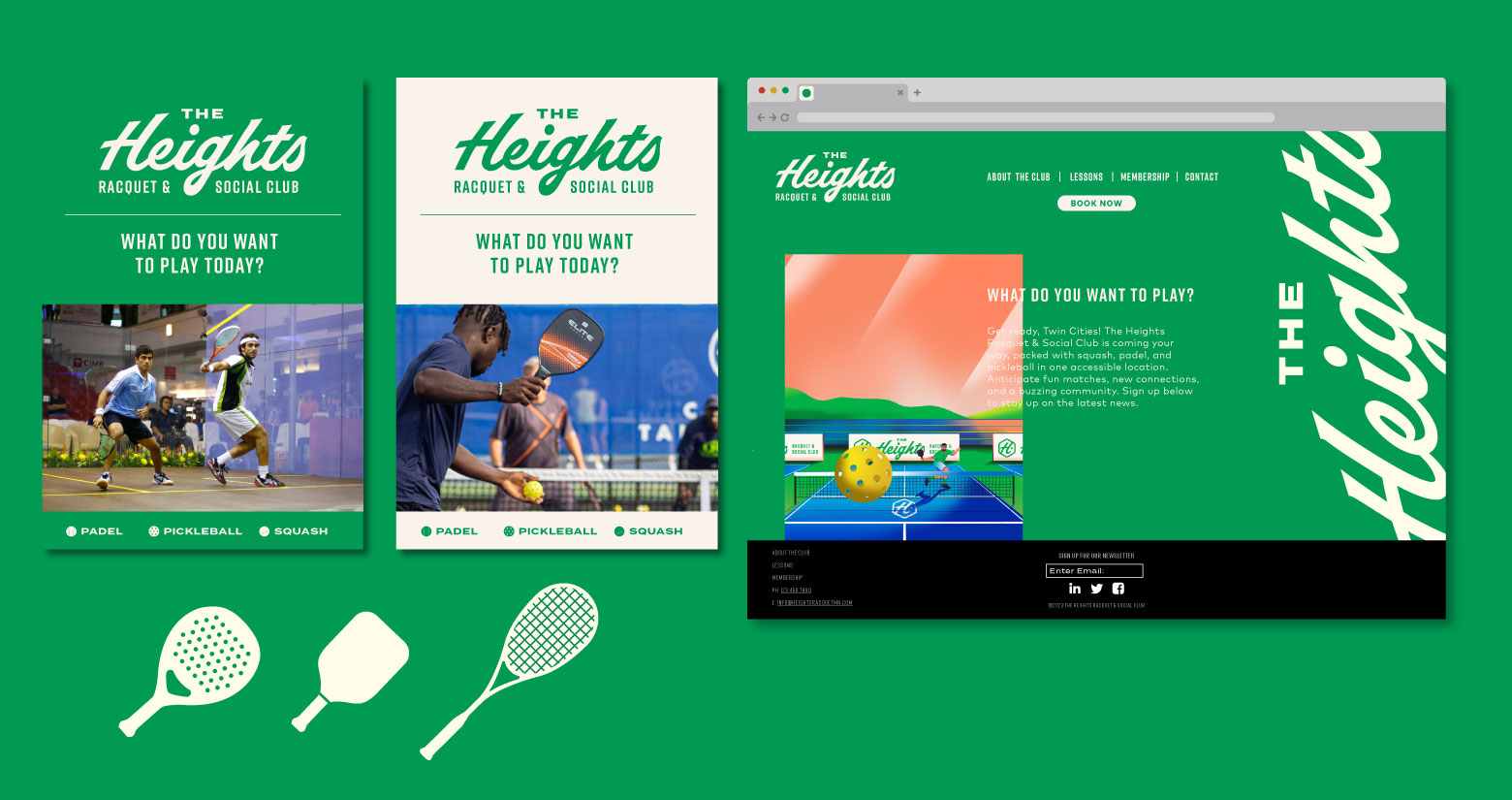 The Heights Racquet and Social club features a relaxed setting where members can play a variety of racquet sports including Pickleball, Squash, and the emerging sport, Padel. The word social is in their name for a reason. When you join The Heights, you’re joining a community. The Heights include a coworking space, full gym, locker rooms, and multiple courts for the racquet sports they offer. We were honored to work with all the folks at The Heights to create a brand that’s energetic yet relaxed and fun yet sophisticated. The brand exploration included illustrations, signage applications, stationary, and a plethora of social media ad templates that were all combined into a robust styleguide.