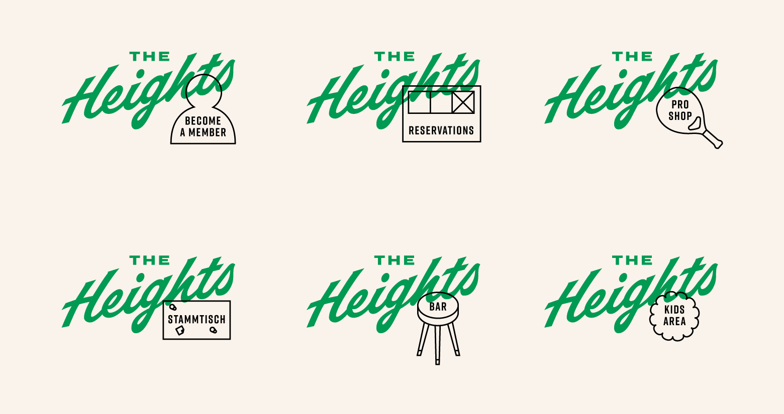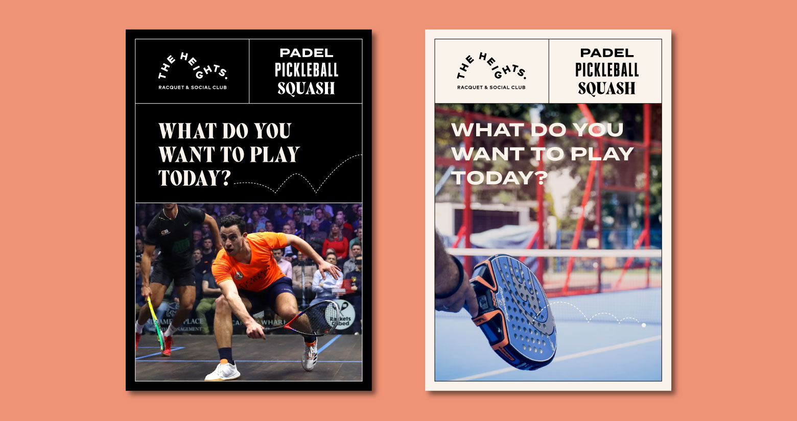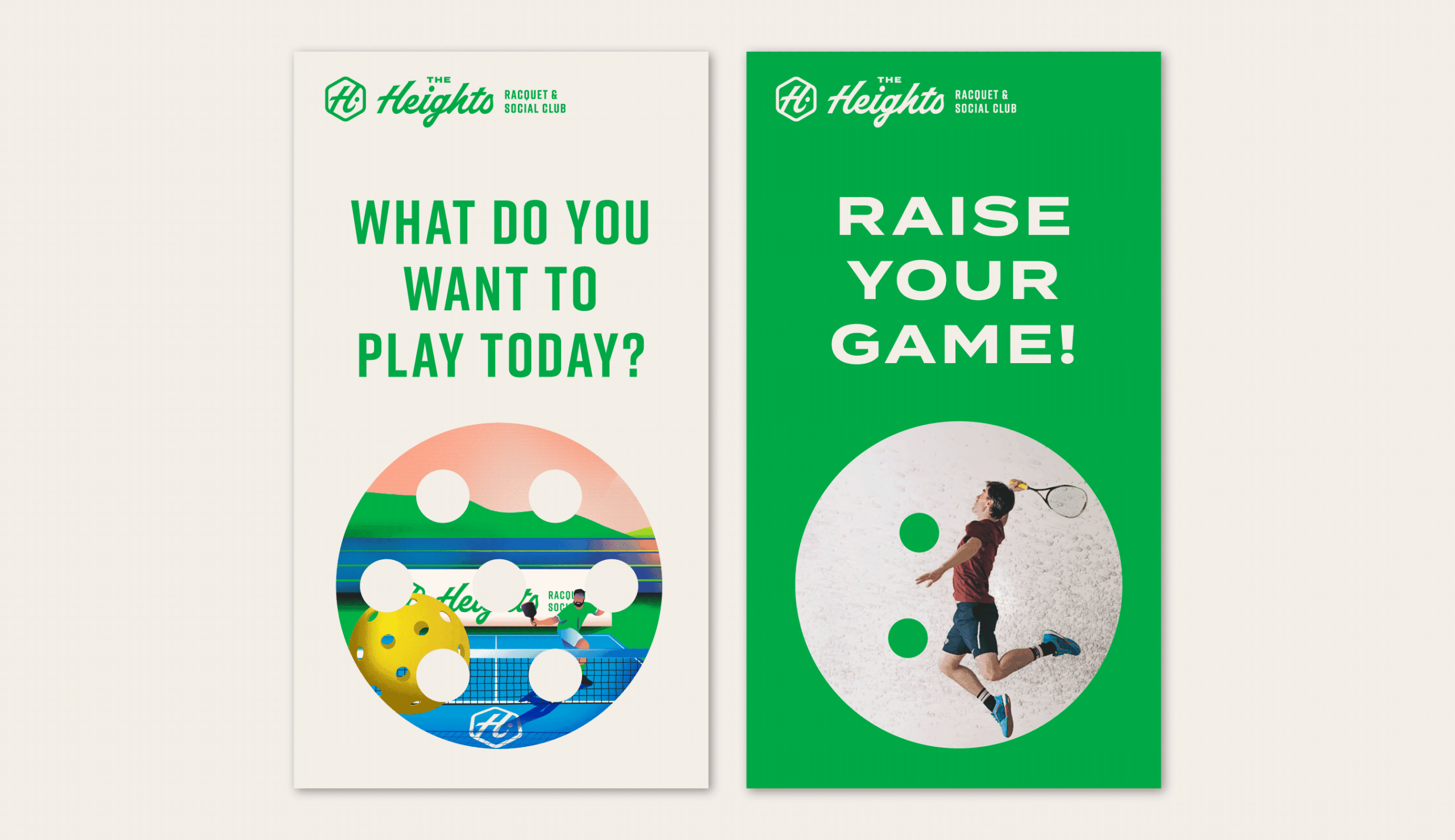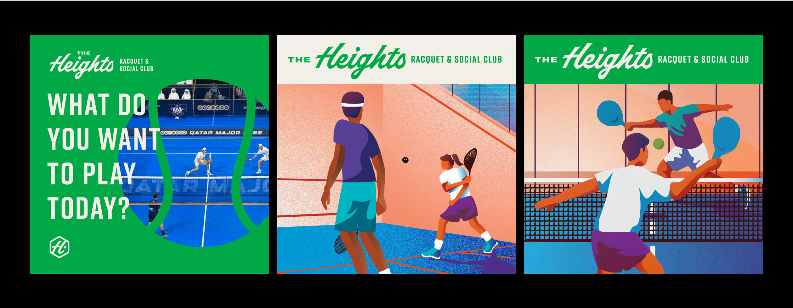 The Heights Racquet and Social club features a relaxed setting where members can play a variety of racquet sports including Pickleball, Squash, and the emerging sport, Padel. The word social is in their name for a reason. When you join The Heights, you’re joining a community. The Heights include a coworking space, full gym, locker rooms, and multiple courts for the racquet sports they offer. We were honored to work with all the folks at The Heights to create a brand that’s energetic yet relaxed and fun yet sophisticated. The brand exploration included illustrations, signage applications, stationary, and a plethora of social media ad templates that were all combined into a robust styleguide.